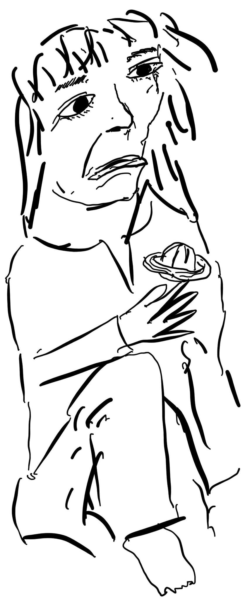 左下方向にずれ落ちていく構図と、個々のパーツを最後まで描かないことで、作者とモデル双方の心象風景を同時に描いた森氏ならではの感性による逸品。