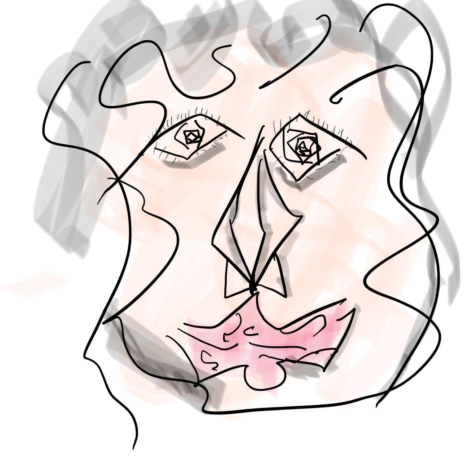 氏の、ネオキュビズムを標榜した時期に描かれたと思われます。力の抜けた曲線と、鼻などの幾何学的な直線の混在が、微妙すぎる緊張感を生み出しています。