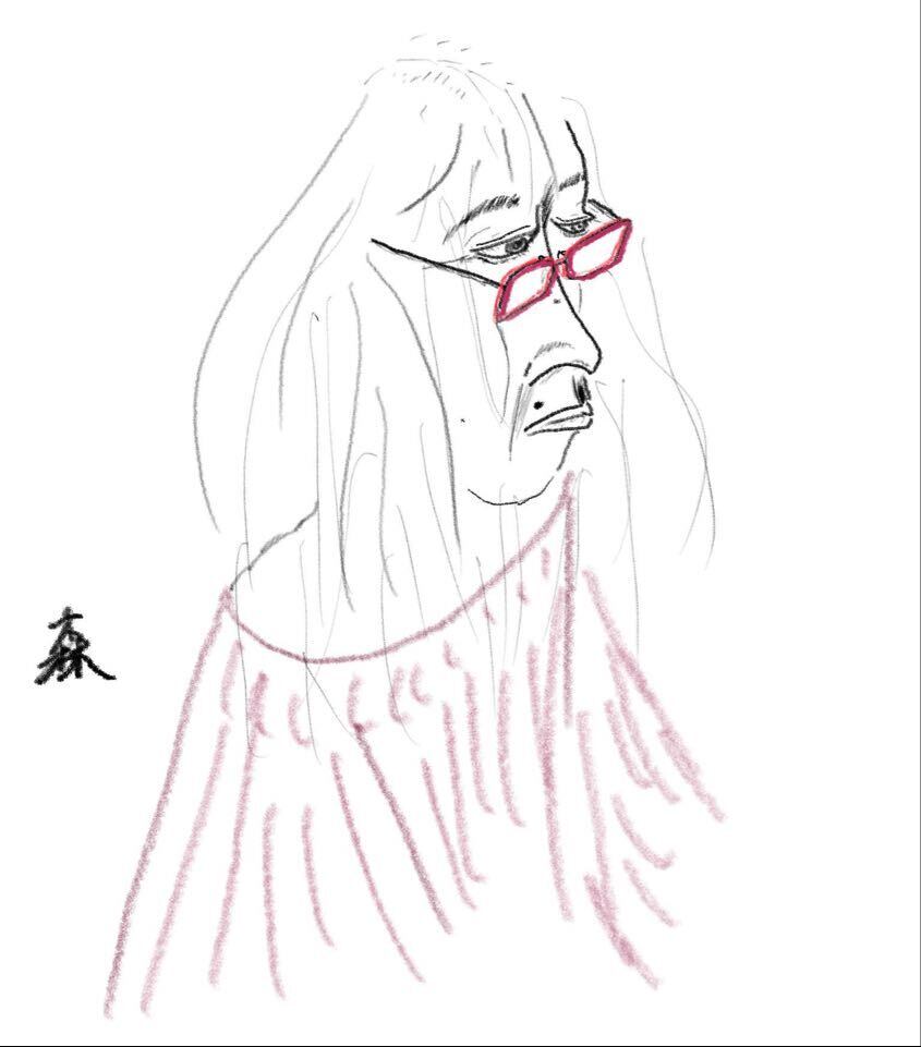「デフォルメの魔術師」との異名をもつ氏の洗練の極み。「森」と漢字で書かれたサインは珍しいのですが、位置から類推すると、これはサインではなく何かの象徴として書かれたものとの解釈が採用されることもあります。