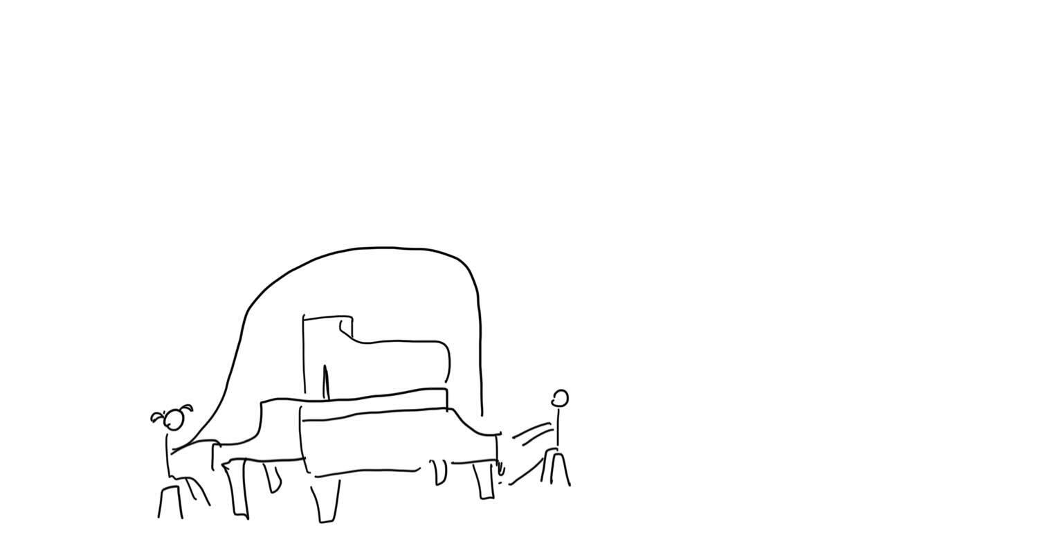 一番目立つ半円の曲線は、一見するとピアノの大屋根だが、よく見るとそうではない。大屋根はきちんと描かれており、その外側を囲うように引かれている。