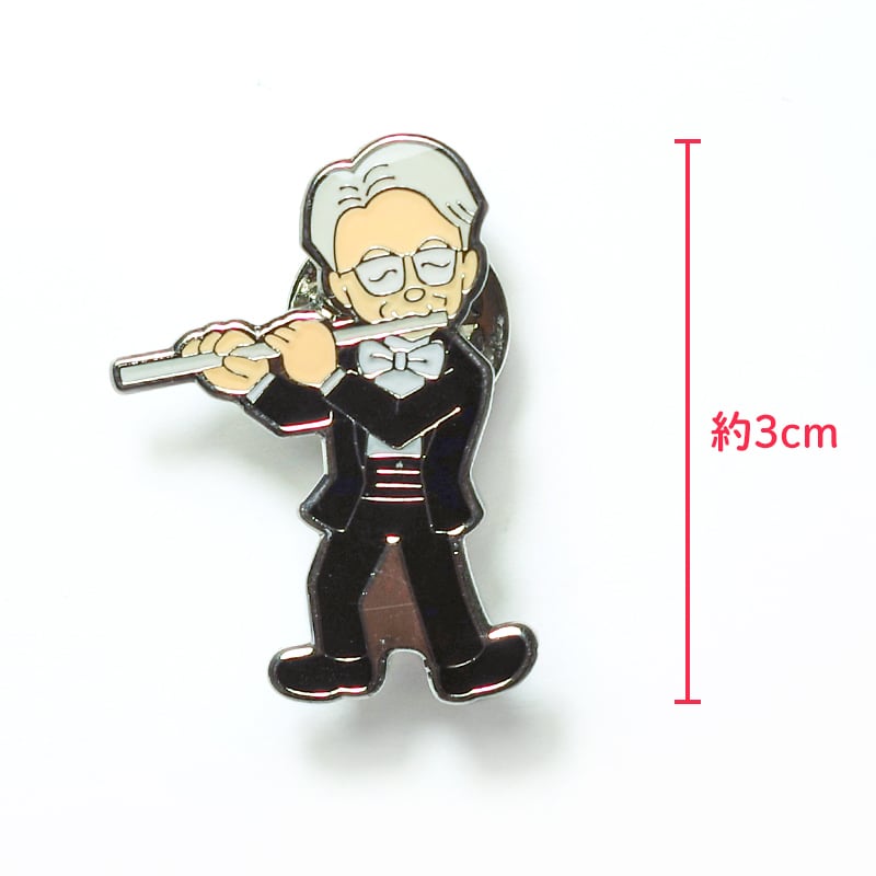 フルーティスト・白尾隆先生をモデルにしたピンバッジのセットです。